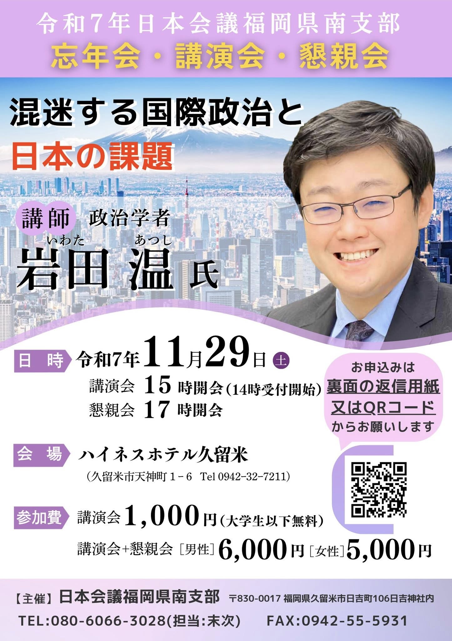 令和7年11月29日(土) 講演会15時開会 懇親会17時開会