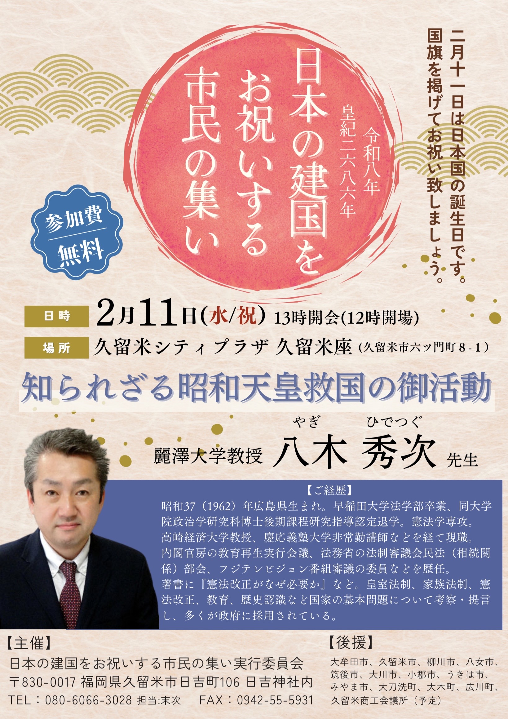 「日本の建国をお祝いする市民の集い」のお知らせ